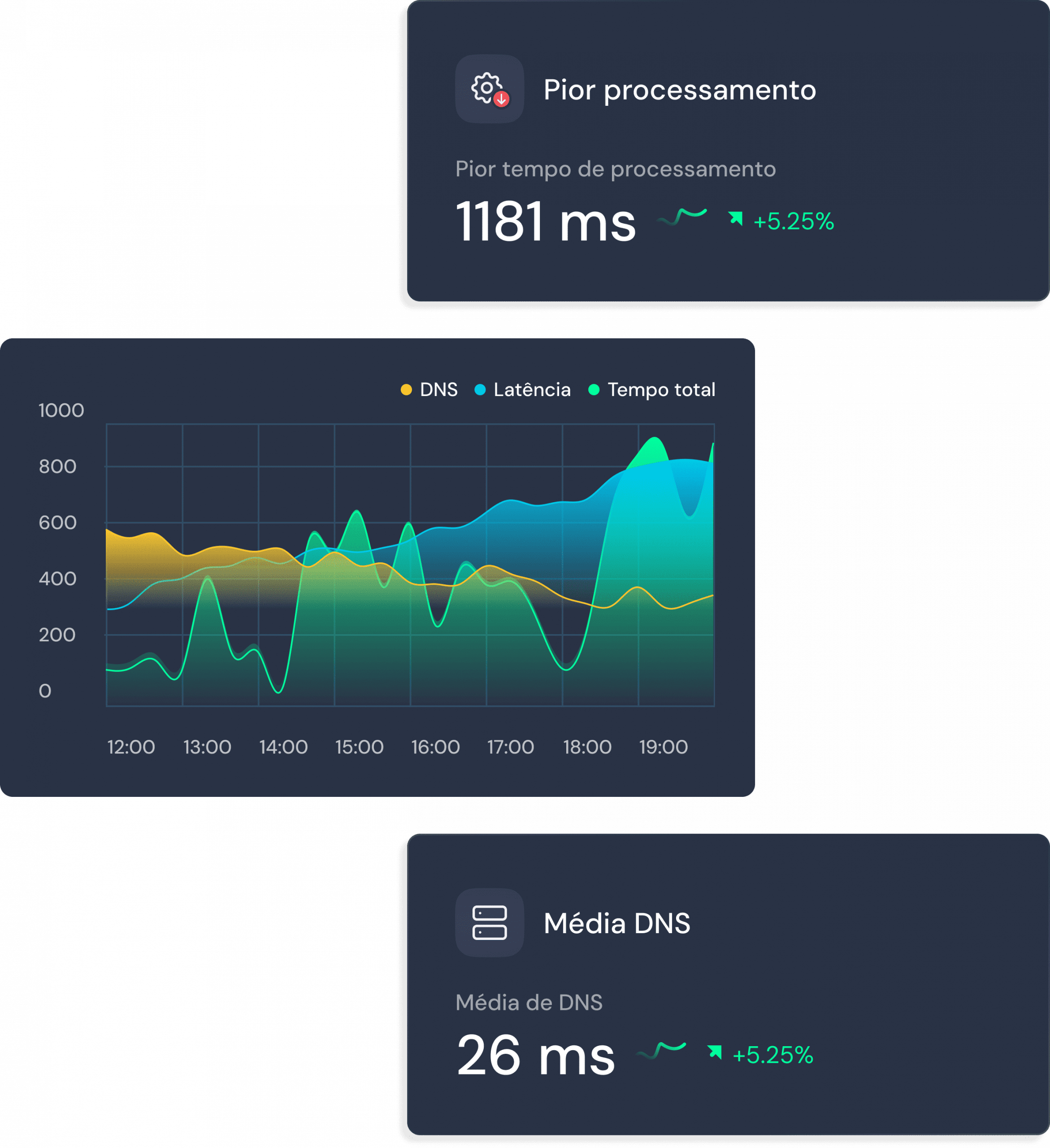 Identifique picos de latência ou instabilidade em tempo real e resolva problemas antes que seus usuários sejam afetados.